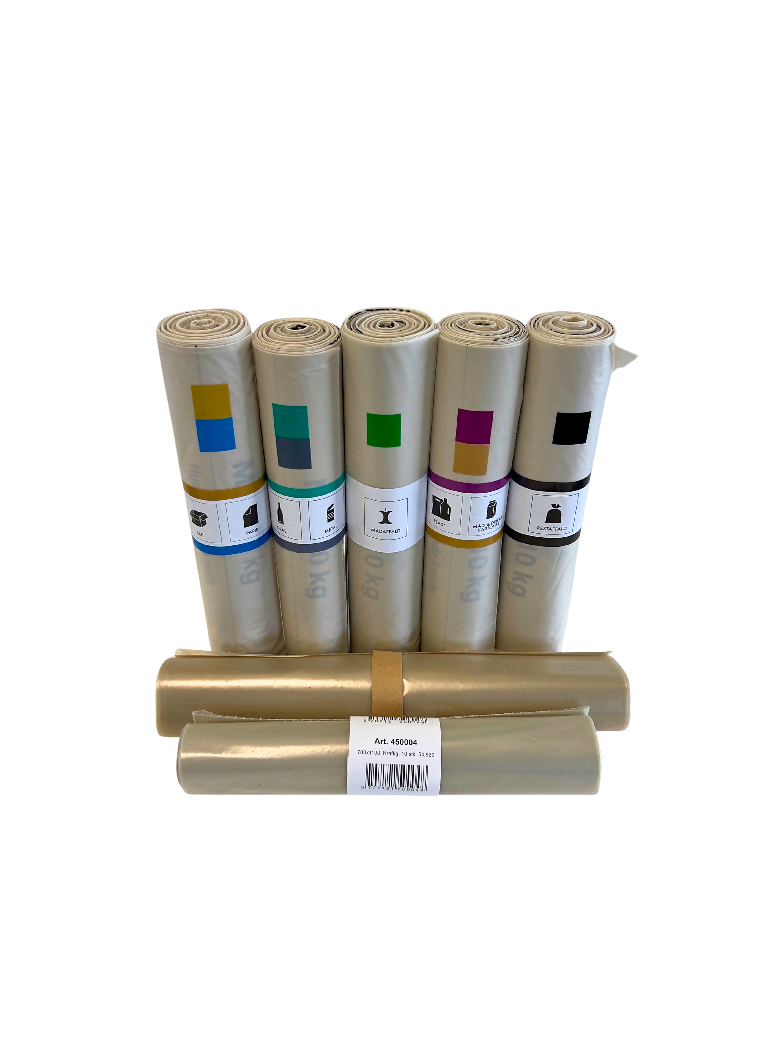 Vi tilbyder madaffaldsposer, der imødekommer jeres krav til kvalitet og anvendelse. Vi kan tilbyde madaffaldsposer i de mål og mængder, du ønsker. Madaffaldsposerne kan leveres som løse poser, på ruller og ruller pakket i plastomslag. Du kan vælge imellem poser fremstillet af genanvendt plast, eller bioplast, som alle har miljømæssige fordele. Vi tilbyder også Polkadotposer til optisk sortering af affaldsfraktioner.
